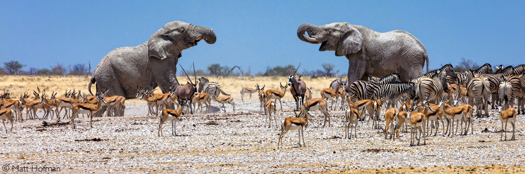 During the dry season, wildlife gathers at Etosha’s many waterholes, making it one of the best places in Africa to photograph multi-species interactions. Expect to see elephants, rhinos, lions, hyenas, cheetahs and, if you’re lucky, a leopard or two. The diversity of plains game – springbok, wildebeest, kudu, zebra, gemsbok – is complemented by over 400 bird species, making Etosha a year-round draw for photographers and birders alike.