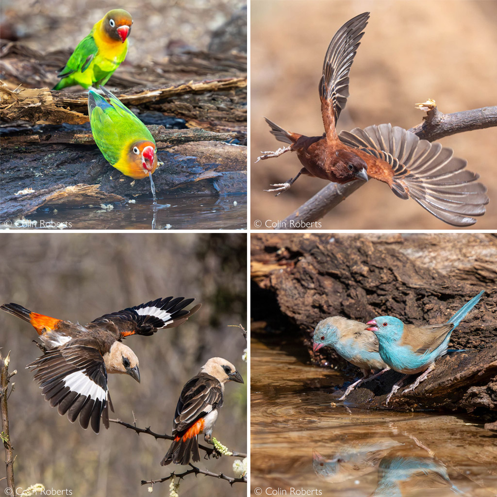 Christian from Africa Geographic organised a 5-day bird-hide session near Amboseli National Park, specifically to photograph a number of waxbill species. The hide was basic (I was told this in advance) but the number and species that visited the hide were remarkable and all target species – and more – were photographed. Nearby Sentrim Amboseli was fantastic and an excellent choice!” – Colin Roberts