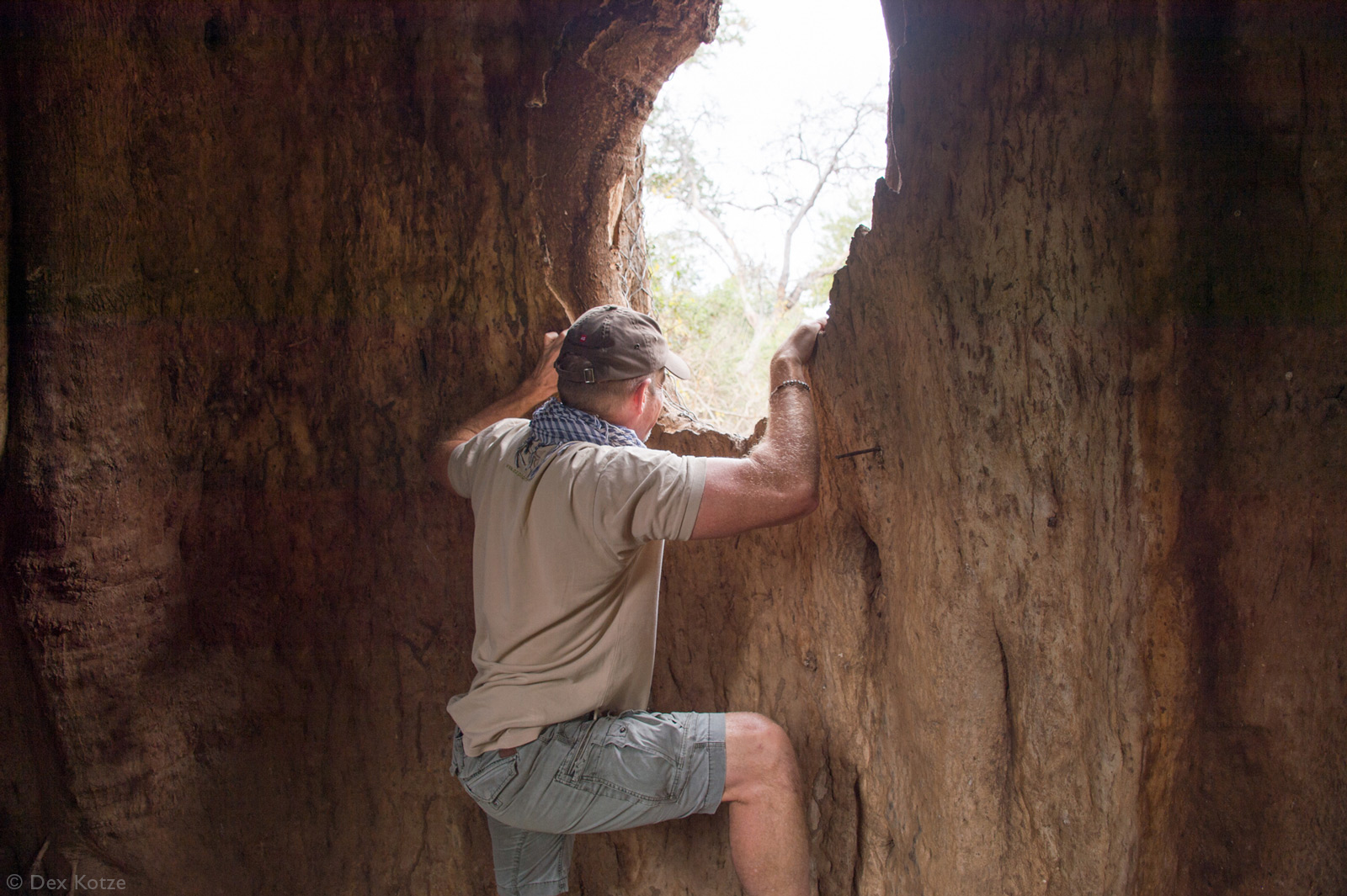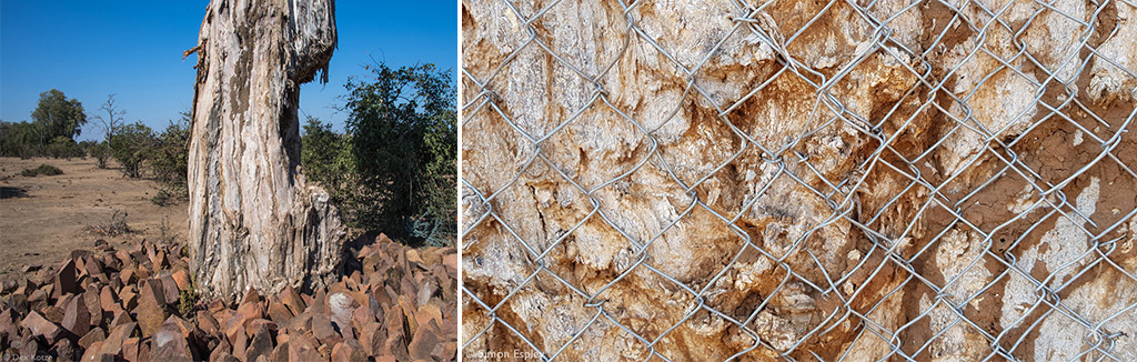 ‘Normal’ baobab lifespans are mere guesswork – growth rings are very faint and often fade away, and so are difficult to count, but carbon dating has been done on a few individuals. The Panke Baobab in Zimbabwe (which died in 2011) was thought to be 2,500 years old, and others have been estimated at 1,000 to 2,000 years old. Usually, old baobabs die by simply crumbling into a pile of fibre, and it is speculated that years of drought in Gonarezhou and increasing regional temperatures are reducing the lifespan of baobabs. Add increased elephant pressure, and things do not look rosy for Gonarezhou’s baobabs.
