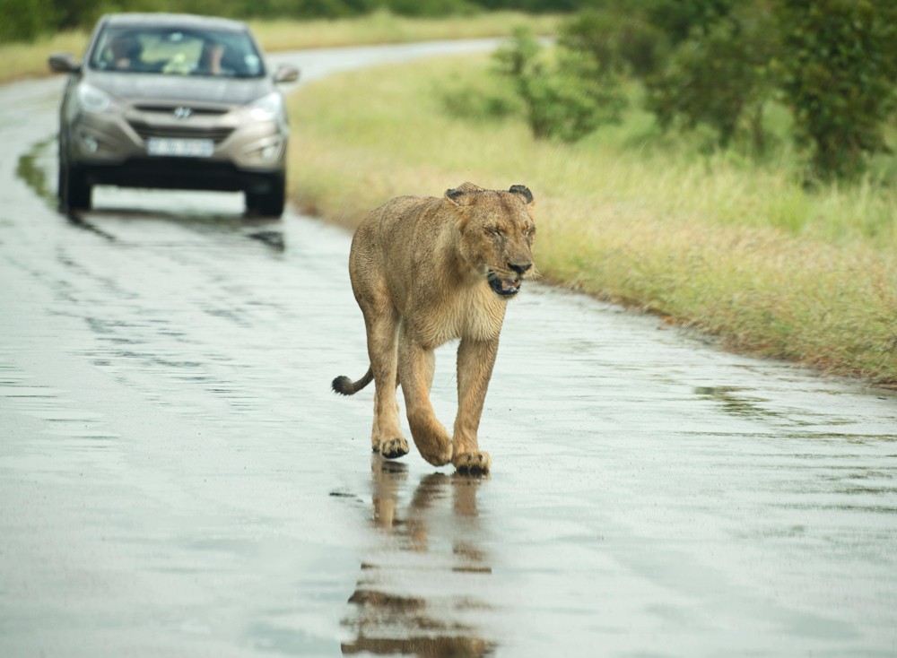 Safety around the wildlife is critical, so please don’t speed – show respect and give animals the space to move. Don’t reverse if a bull elephant blocks the road; this signals fear and submission, which keeps the elephant engaged. Instead, turn around and drive two to three kilometres away before turning off the engine and waiting 10 to 15 minutes for the bull to become bored and go back into the bush.