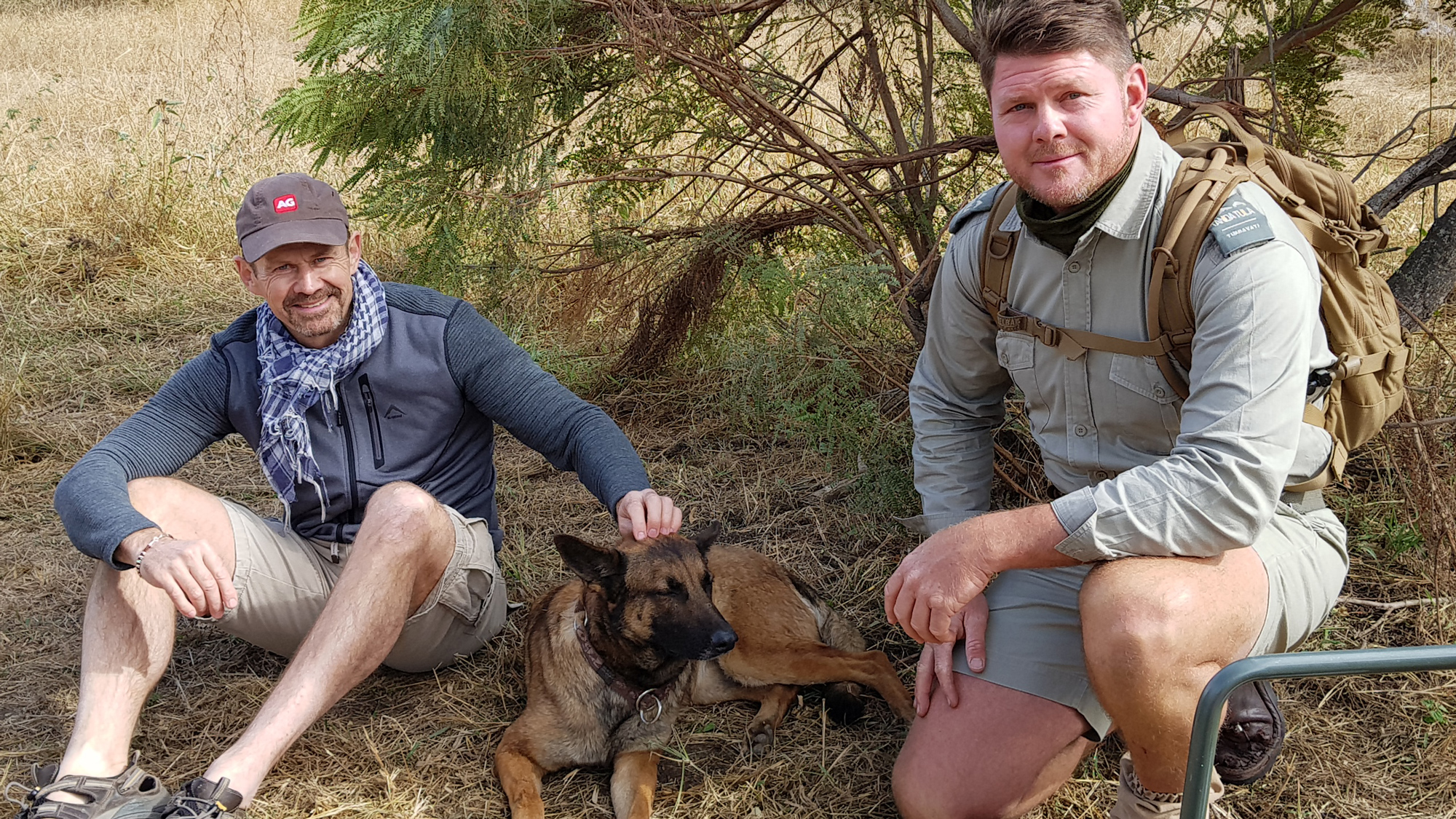 Before long a bakkie arrived in camp – our anti-poaching heroes (avec dog) dropped by for a chat, along with two others we recognised as the alleged poachers. First in camp to greet us was the vicious dog, now all smiling eyes and wagging tail. The morning’s encounter was a training exercise. 🙂