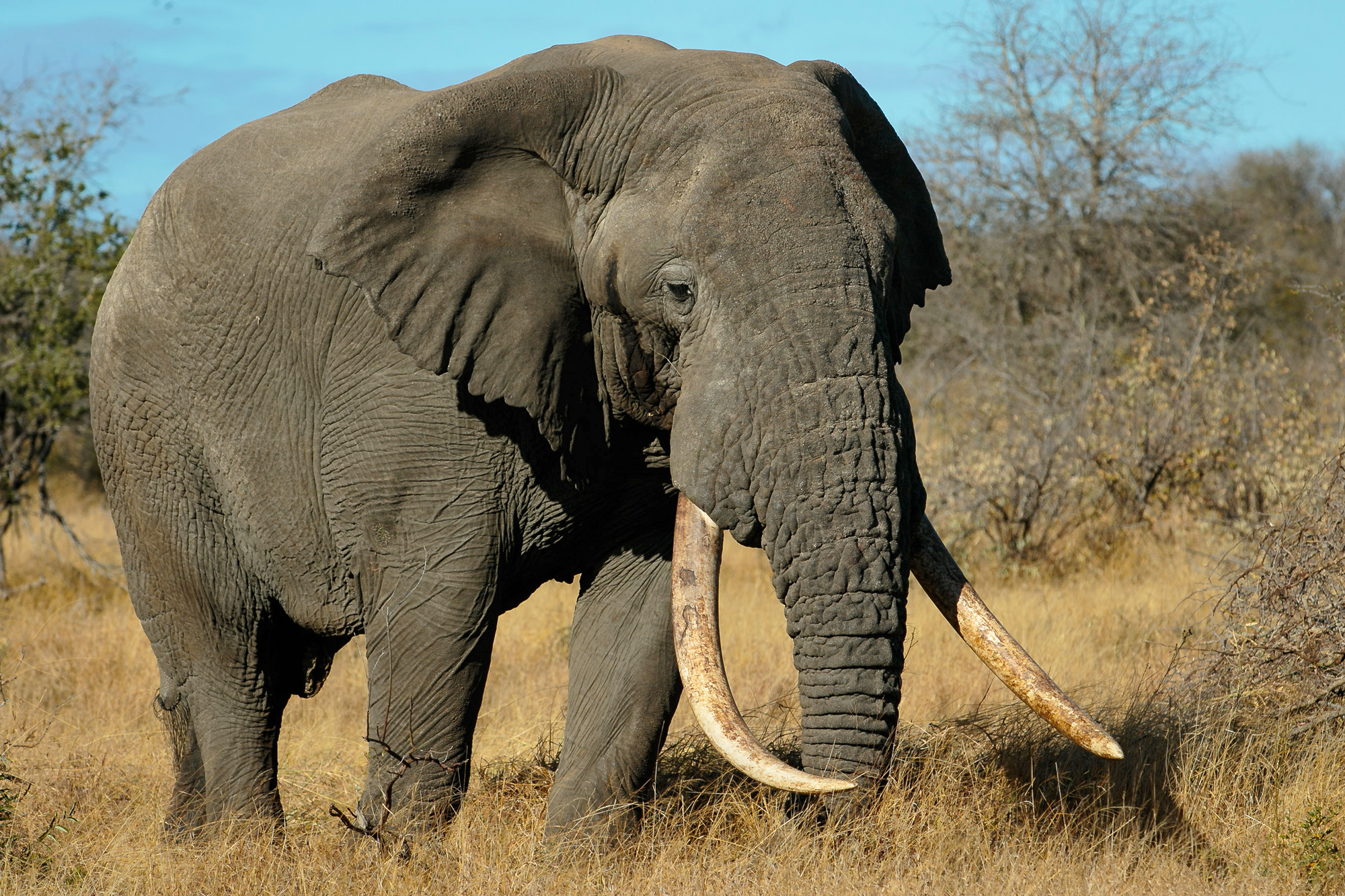 One morning we bumped into the largest tusker I have seen in the Kruger area – a gentle giant by the human name of Apollo. He was in musth, but showing no signs of aggression, or even mild agitation. We parked off about 300 metres away, and Apollo ambled over in that elephant way, time being of no concern.