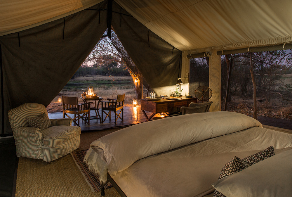 Machaba Camp is a luxurious camp on the banks of the Khwai River. The camp is built in the classic 1950’s style, with luxury safari tents, en-suite bathrooms and living areas, not forgetting the romantic outdoor showers.
