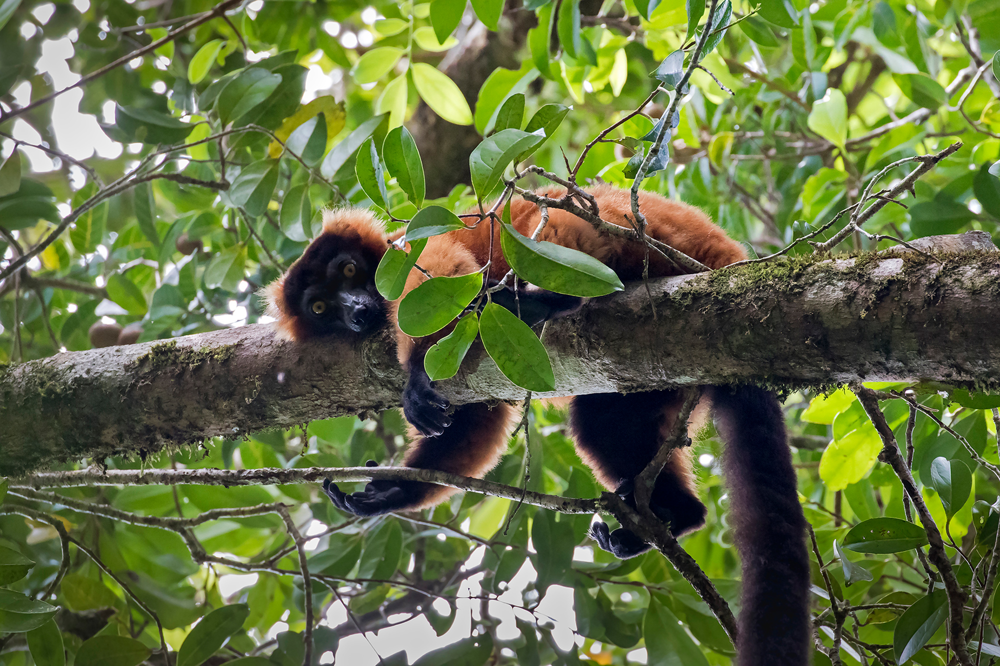 One of the largest true lemurs found in Madagascar, red-ruffed lemurs are among the most frugivorous species on the island, preferring to nosh on the fruit of canarium trees. As a result of their proclivity for fruit, red-ruffed lemurs fill a critical ecological role in Madagascar – seed dispersal. In most of the planet’s tropical regions, birds perform this ecological function.