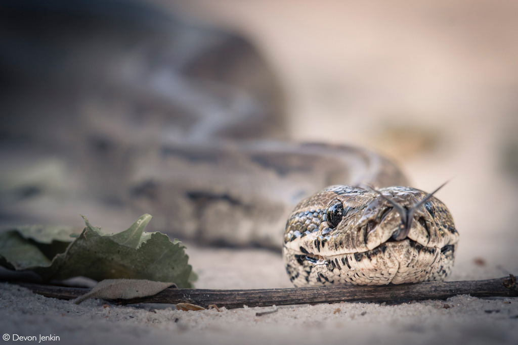 “Lying down flat on the ground in front of this African rock python allowed me to capture an intimate portrait of an incredible snake.” Okavango Delta , Botswana. © Devon Jenkin