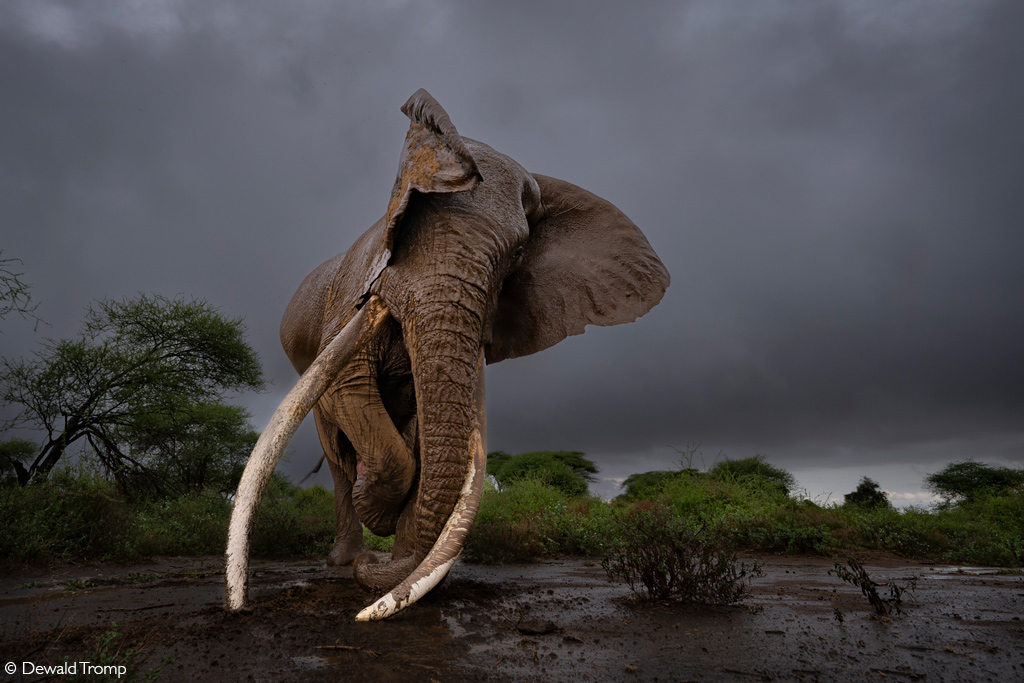 At 53, Craig is one of Amboseli’s elder statesmen. “When you have to scratch an itch, it is beneficial to have two tusks to keep your balance.” Amboseli National Park, Kenya . © Dewald Tromp