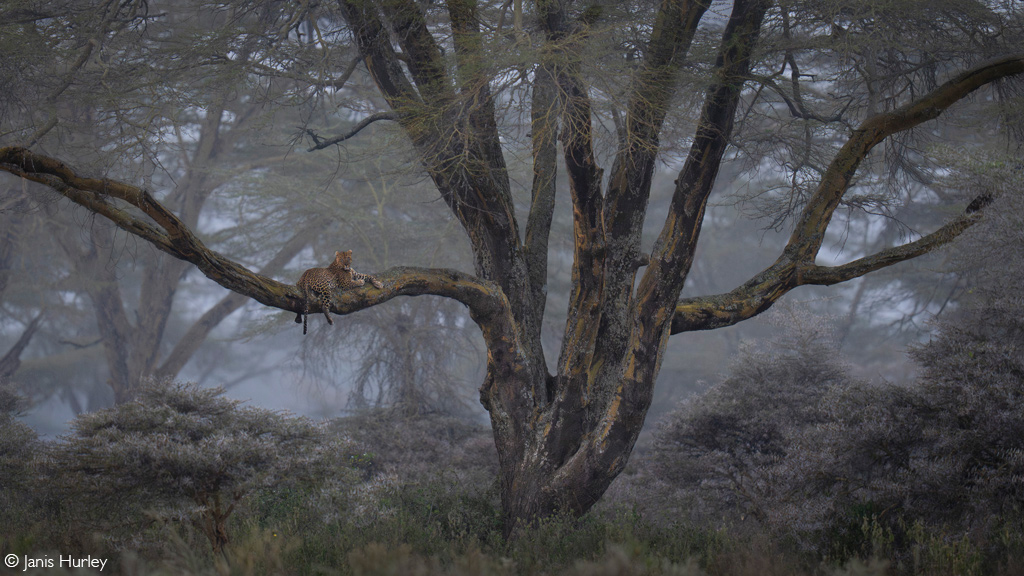 A magnificent leopard in a grand and weathered fever tree. “My guide said he hadn’t seen a leopard in a year, so I had low expectations. As we photographed him, it began to rain heavily.” Lake Nakuru National Park, Kenya . © Janis Hurley