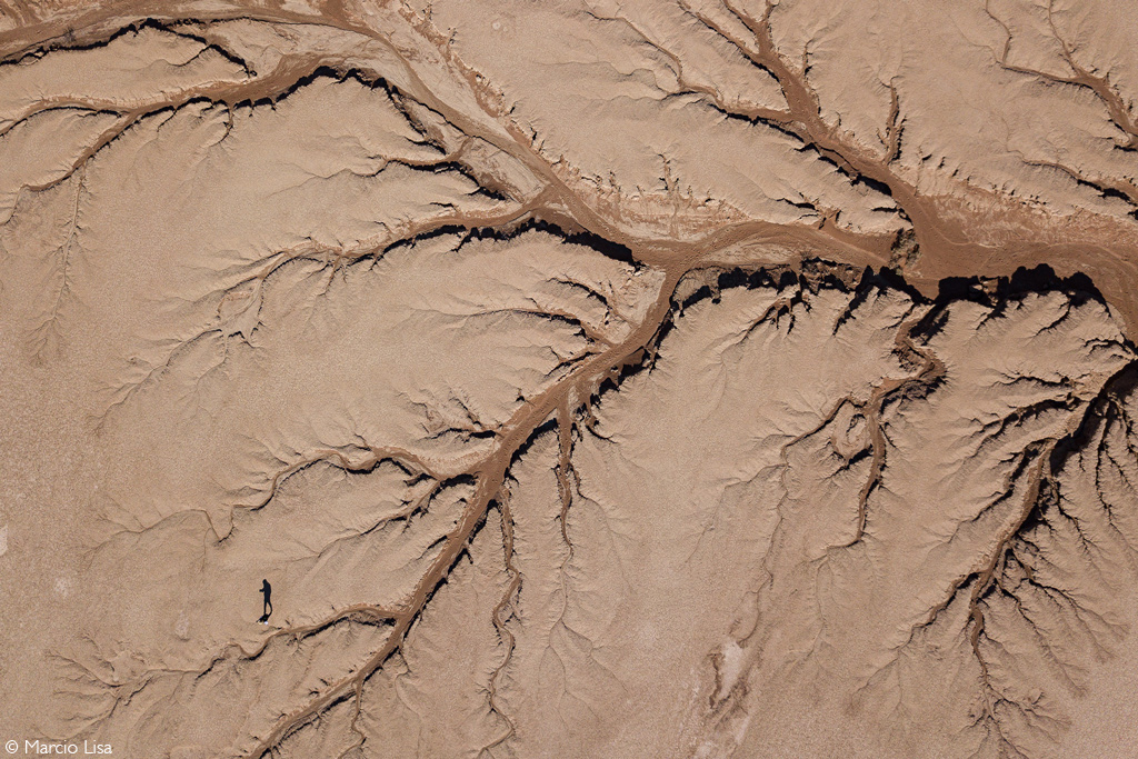 The skeleton of a river, etched in ochre. From above, the Namib becomes a surrealist’s dream. Namibia. © Marcio Lisa