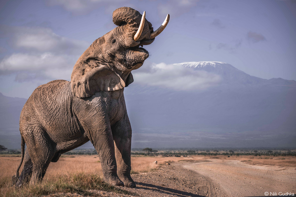 Nili says: “It was mid-morning in Amboseli National Park, and the snowy peak of Mount Kilimanjaro was wrapped in clouds. Herds of elephants began their march into the park, heading for the Ol Tukai swamps to feed on the soft reeds and get relief from the sweltering heat. A few bull elephants had come into musth after the severe drought. This bull was one of them, trailing the herds. One herd had just crossed the road in front of us, and this bull was following right behind them. Just before he crossed the road, he stopped on the edge, smelling the air. That is the moment I captured this iconic image of an elephant bull and Mount Kilimanjaro. Two of Africa’s icons.”