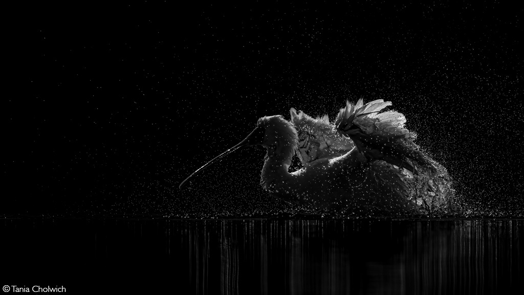 Tania says: “I wanted to highlight the elegance and raw energy of the moment – the droplets, the pose, the contrast. The spoonbill was mid-bath. I knew this shot had to be in monochrome to enhance its mood and drama.”