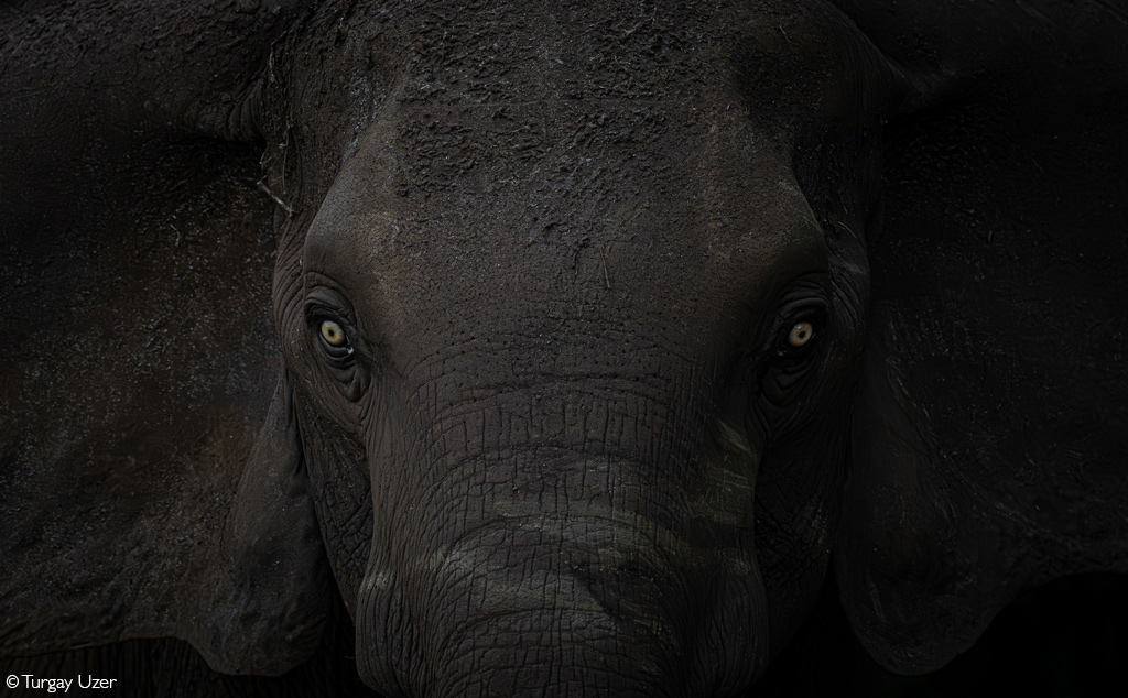 Turgay says: “Forest elephants are perceived as much more aggressive than their savannah cousins, especially outside their forest homes, where they are downright hostile. I experienced their hostility first-hand in Gabon. In the fading daylight, I had been busy photographing another local species, the rosy bee-eater, when I noticed some forest elephants venturing out of the forest to graze. They soon went back into the forest. Assuming that the sighting was over, I started to pack away my camera gear when one of them charged out of the forest and headed directly to our vehicle. My driver was justifiably concerned and started to whisk us away as quickly as possible. I was seated in the back row and managed to take a few shots with the only camera I had, and with no chance to adjust my settings. Suddenly, the elephant decided its message had been received, abandoned the mock charge, and turned around and trotted back into the safety of its forest home. This image is what I saw from the back of the vehicle.”