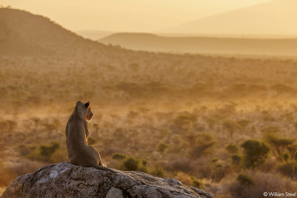 A lioness surveys Samburu with easy authority. Samburu National Reserve, Kenya. © William Steel