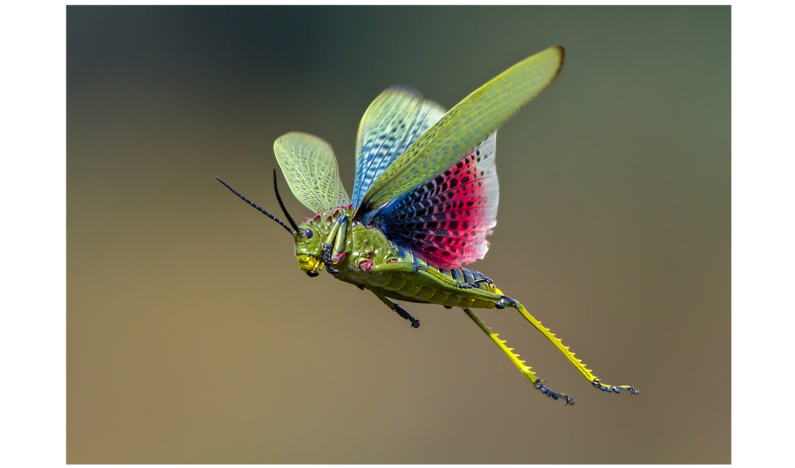 A locust takes flight in Walter Sisulu Botanical Gardens in Roodepoort, South Africa.