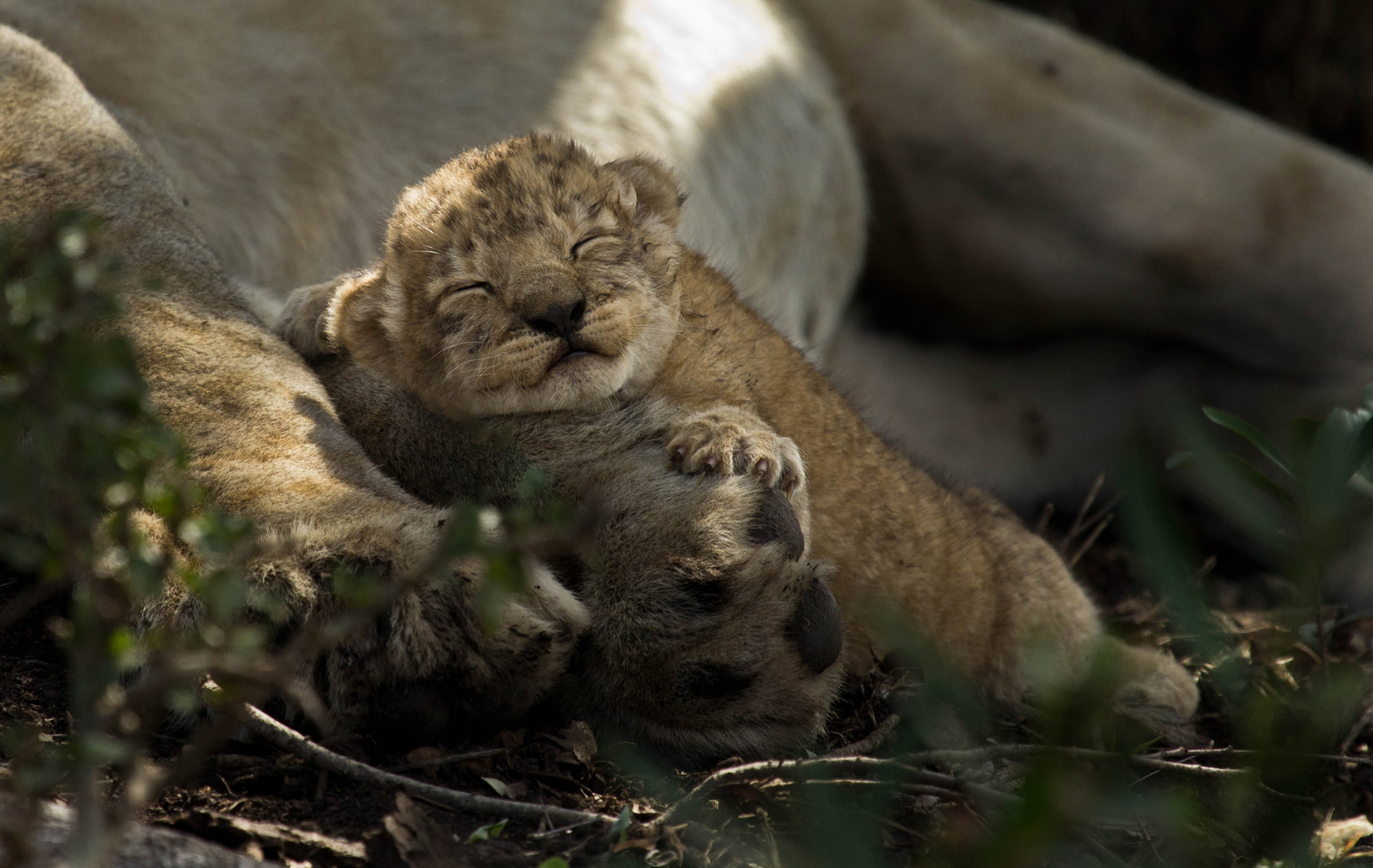 ? A cub finds solace in a pride member’s arms ©Matthew Murray