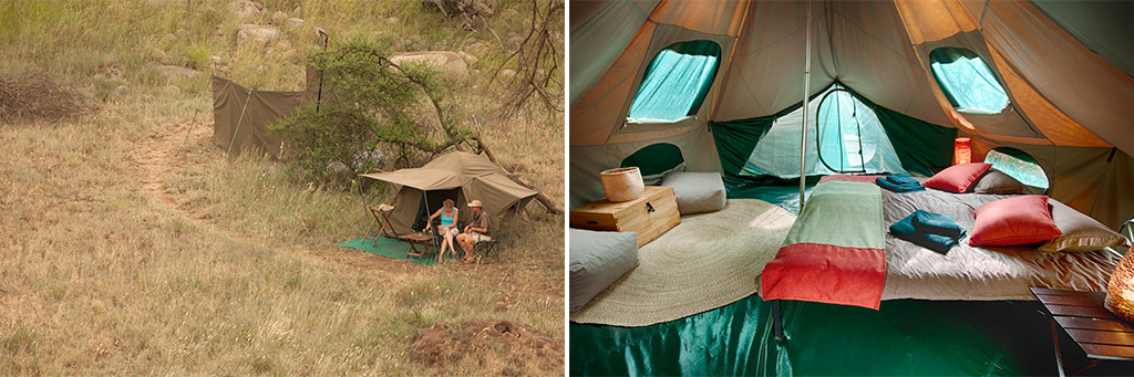 The three camps range from ‘classic’ camps (canvas bell tents) to ‘walking’ camps (canvas dome tents) and ‘trekking’ camps (ultra-lightweight nylon tents).