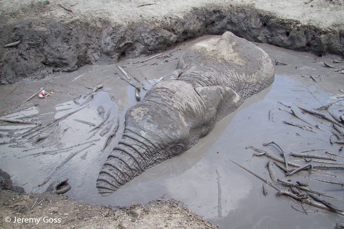An elephant calf is saved after he became trapped in a dam at Phalaborwa Copper, Limpopo – thanks to the heroic team of Elephants Alive